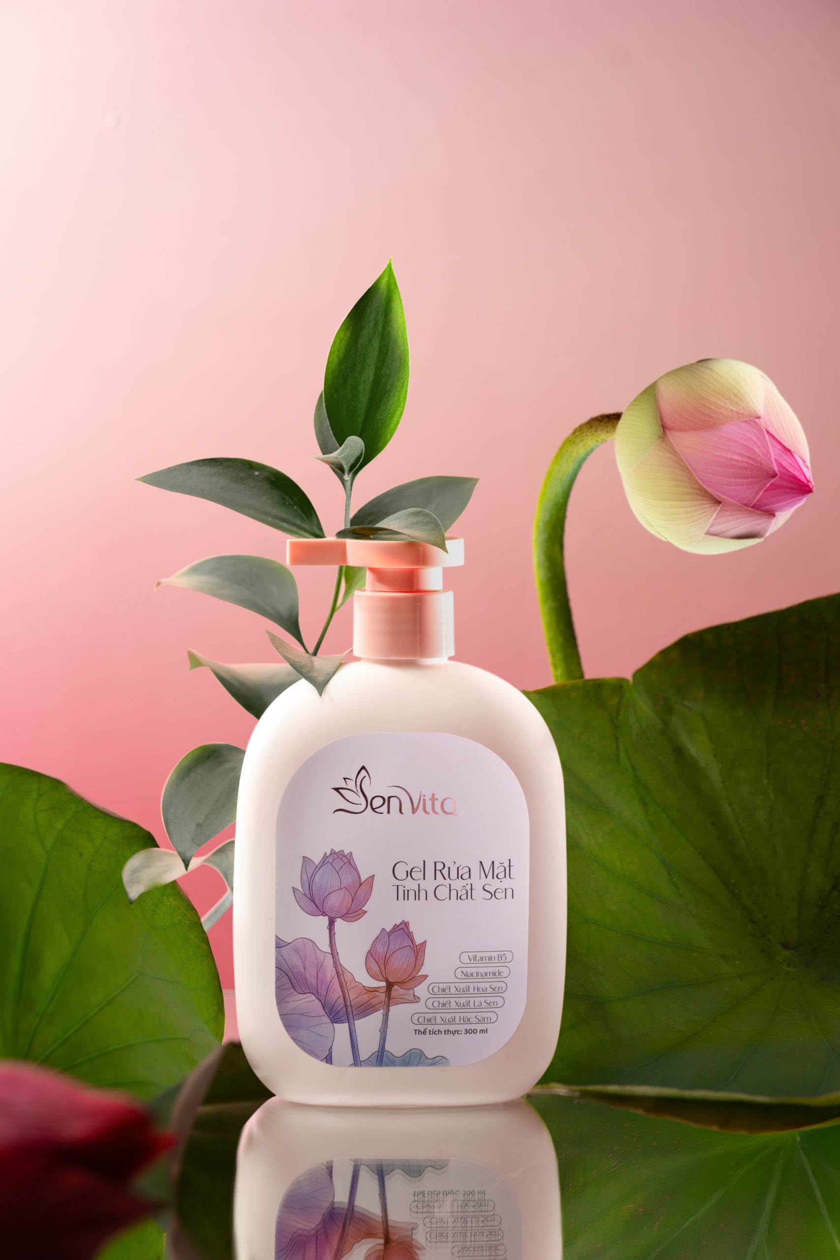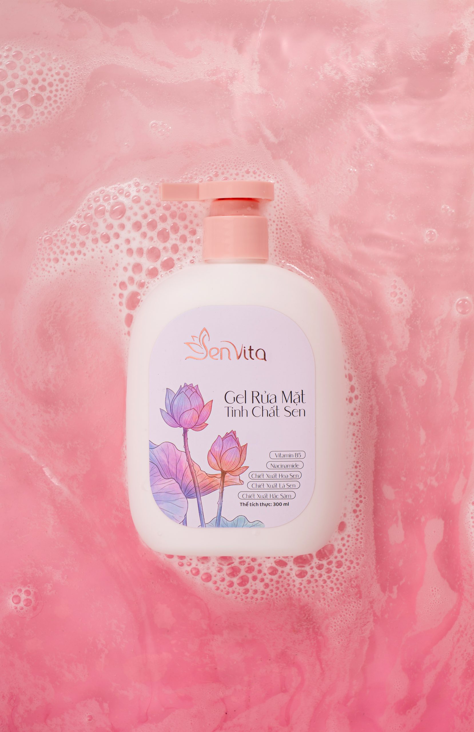 Gel rửa mặt Senvita với chiết xuất sen, niacinamide, B5 giúp làm sạch dịu nhẹ, ít bọt, không khô căng, dưỡng da sáng, phù hợp cho da nhạy cảm và dùng hằng ngày.