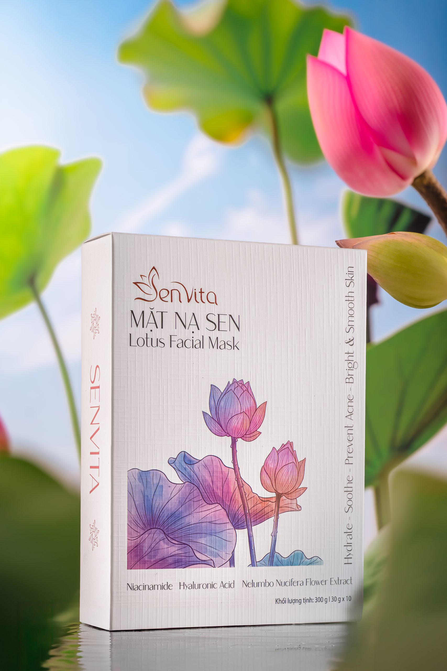 Thành phần nổi bật : Niacinamide, Hialuronic Acid, Chiết xuất Hoa Sen,